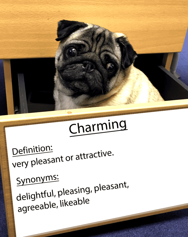 Read moreCharming Definition: Very pleasant or attractive Example: A charming country cottage Synonyms: endearing, lovely,lovable, adorable, cute, sweet