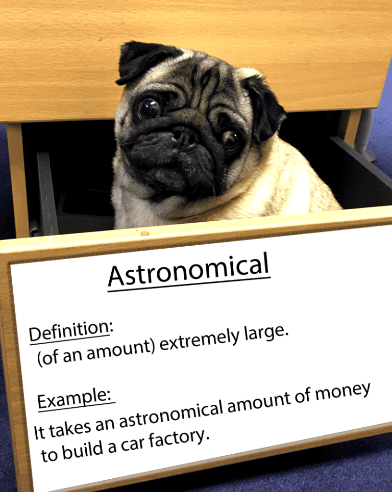 Read moreAstronomical Definition: (of an amount) extremely large. Example: “It takes an astronomical amount of money to build a car factory.” Synonyms: huge,great,giant, massive, vast, enormous, immense