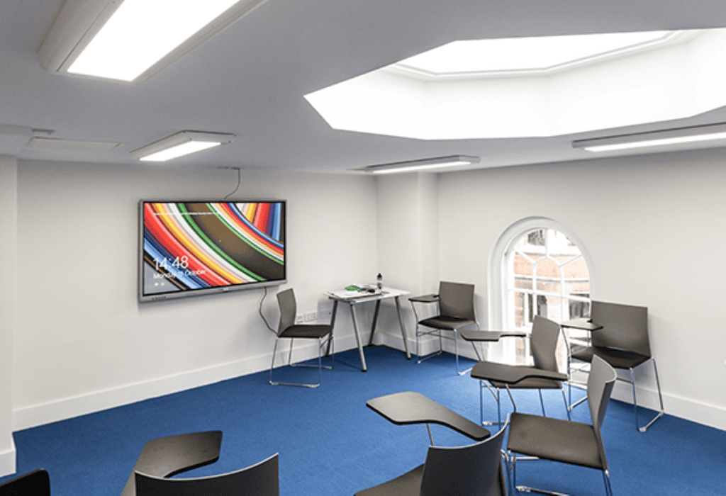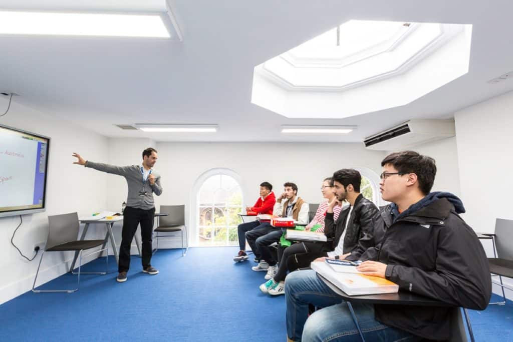 The school features modern classrooms equipped with large interactive screens, a student lounge, free Wi-Fi, an IT lounge, library, café, and self-study rooms, all designed to support varied learning needs. These facilities create an engaging environment where students can focus on improving their English skills while also having spaces to relax and connect with others.